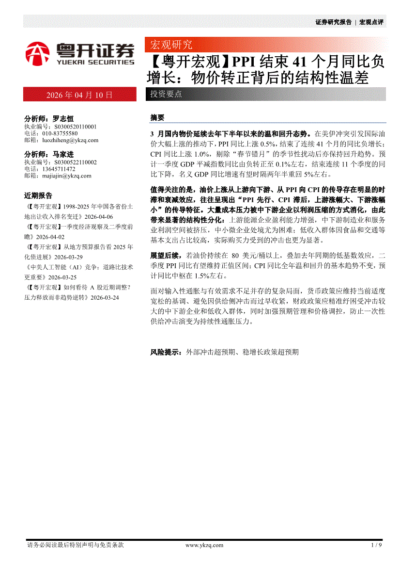 粵開證券-【粵開宏觀】PPI結(jié)束41個(gè)月同比負(fù)增長(zhǎng):物價(jià)轉(zhuǎn)正背后的結(jié)構(gòu)性溫差-260410