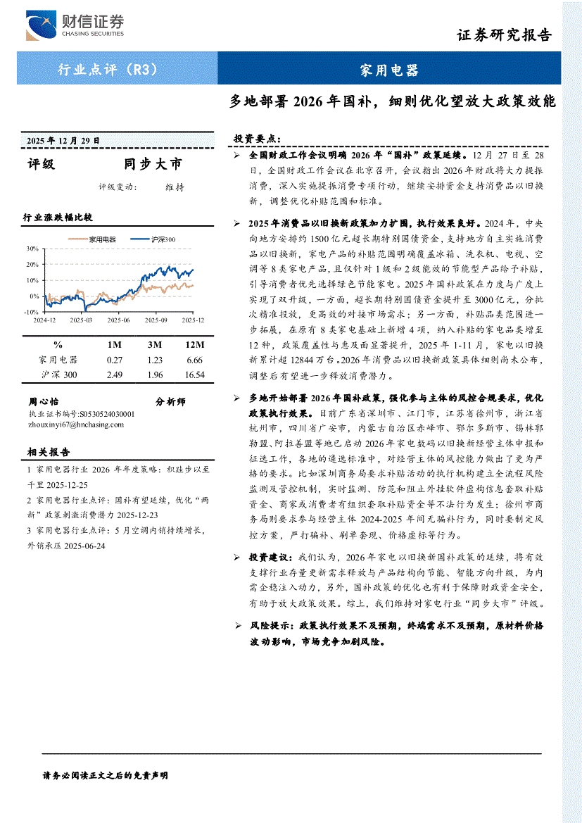 家用電器行業(yè):財(cái)信證券-家用電器行業(yè):多地部署2026年國(guó)補(bǔ),細(xì)則優(yōu)化望放大政策效能-251229
