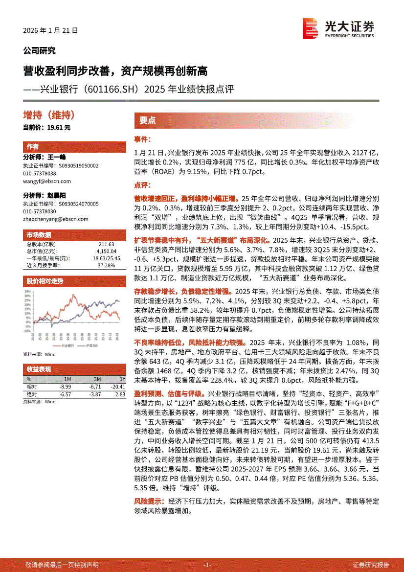 興業(yè)銀行:光大證券-興業(yè)銀行-601166-2025年業(yè)績快報點評:營收盈利同步改善,資產(chǎn)規(guī)模再創(chuàng)新高-260121