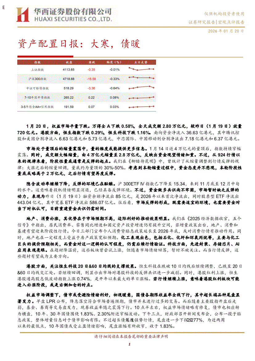華西證券-資產(chǎn)配置日?qǐng)?bào):大寒,債暖-260120