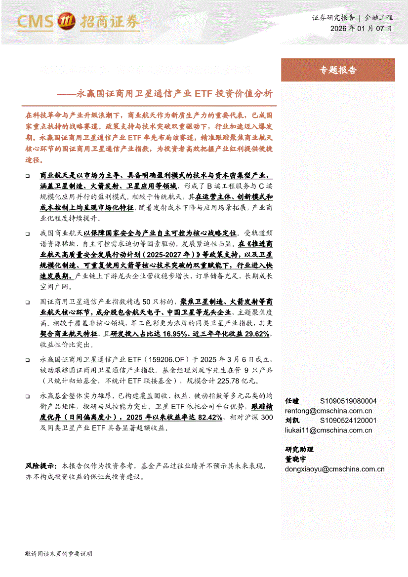 招商證券-永贏國證商用衛(wèi)星通信產業(yè)ETF投資價值分析:政策技術雙驅動,商業(yè)航天賽道的指數(shù)化投資機遇-260107