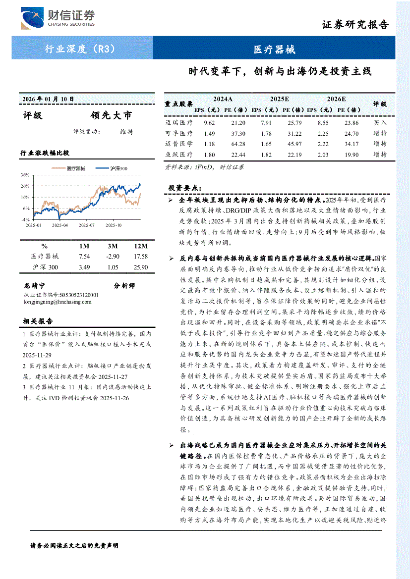 醫(yī)療器械行業(yè):財信證券-醫(yī)療器械行業(yè):時代變革下,創(chuàng)新與出海仍是投資主線-260110