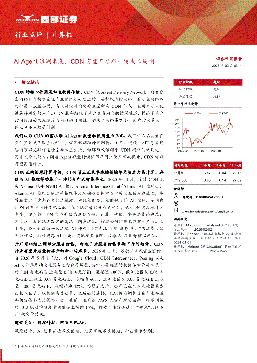 計(jì)算機(jī)行業(yè):西部證券-計(jì)算機(jī)行業(yè)點(diǎn)評:AI Agent浪潮來襲,CDN有望開啟新一輪成長周期-260203
