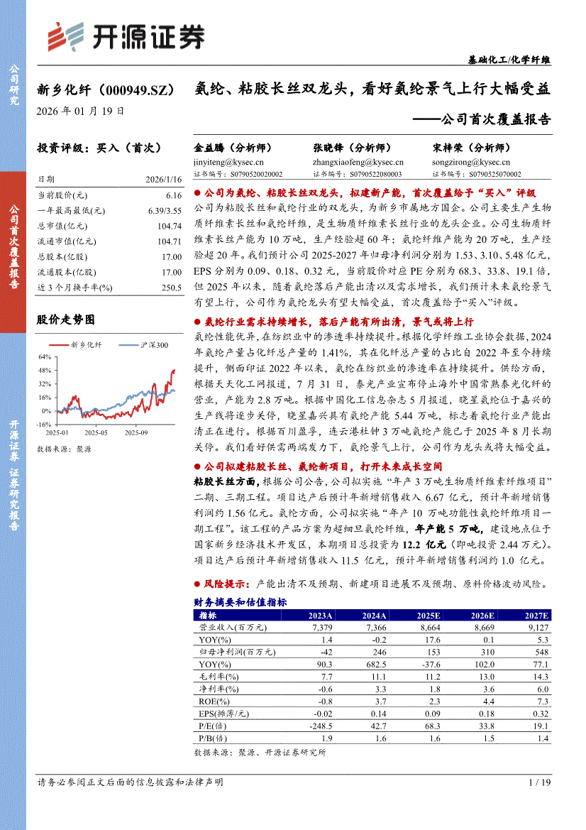 新鄉(xiāng)化纖:開源證券-新鄉(xiāng)化纖-000949-公司首次覆蓋報告:氨綸、粘膠長絲雙龍頭,看好氨綸景氣上行大幅受益-260119
