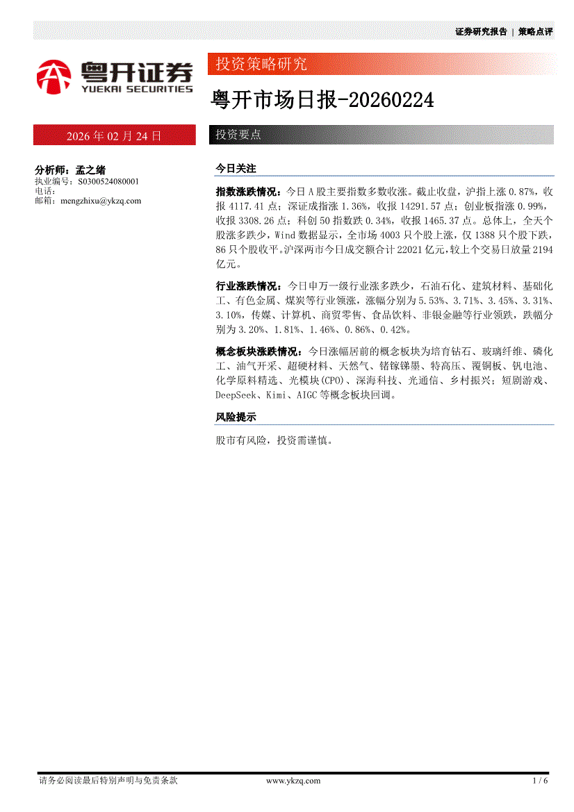 粵開證券-粵開市場日報-260224