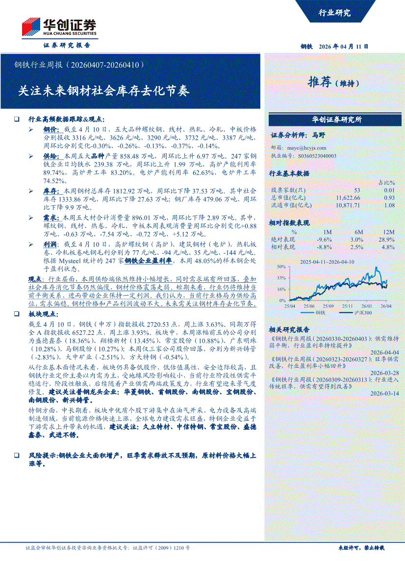 鋼鐵行業(yè):華創(chuàng)證券-鋼鐵行業(yè)周報(bào):關(guān)注未來(lái)鋼材社會(huì)庫(kù)存去化節(jié)奏-260411