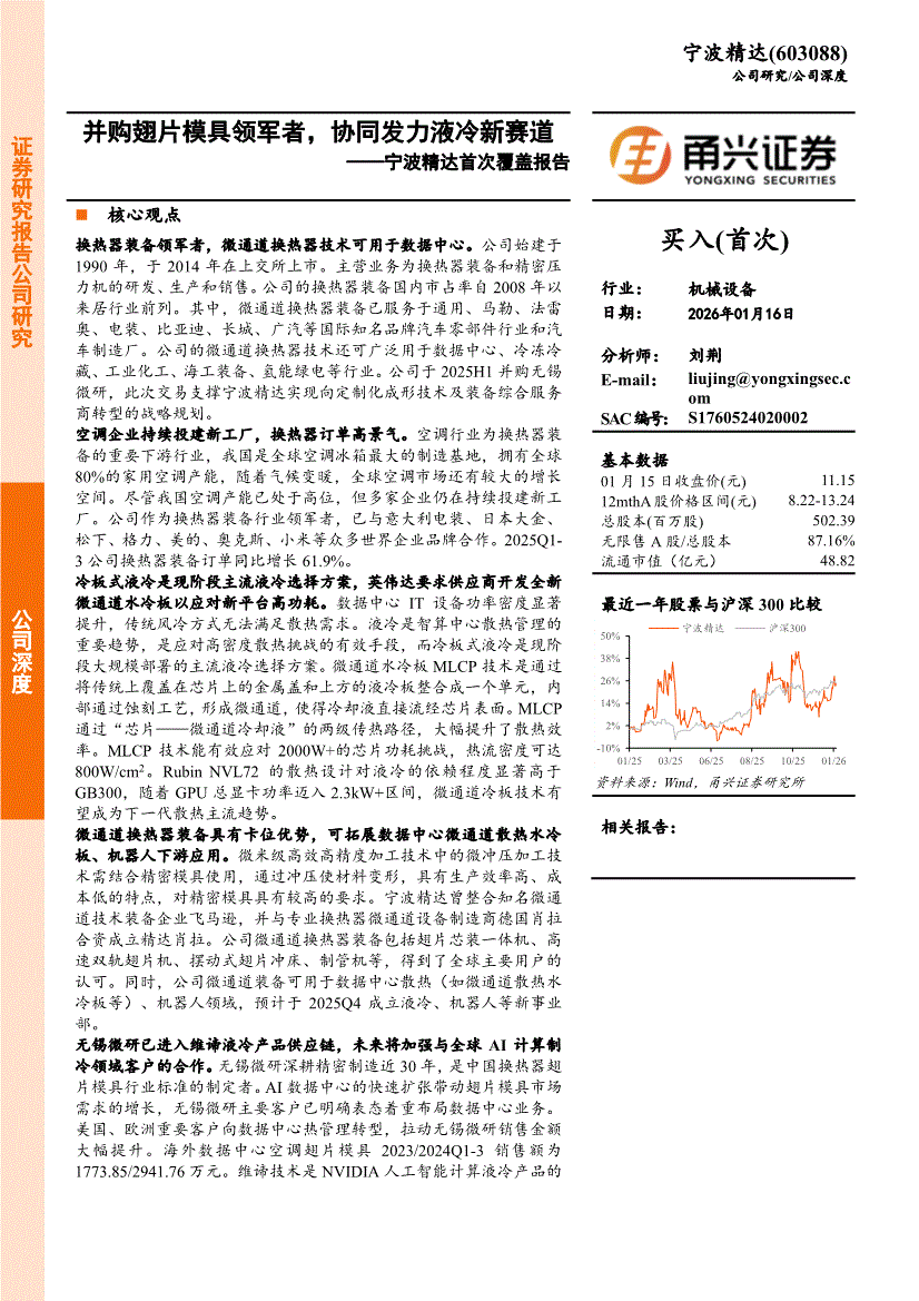 寧波精達:甬興證券-寧波精達-603088-首次覆蓋報告:并購翅片模具領軍者,協(xié)同發(fā)力液冷新賽道-260116