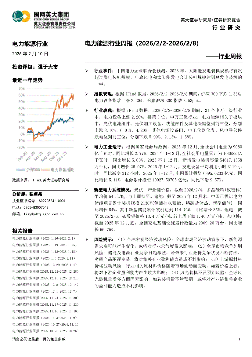 電力能源行業(yè):英大證券-電力能源行業(yè)周報(bào)-260210