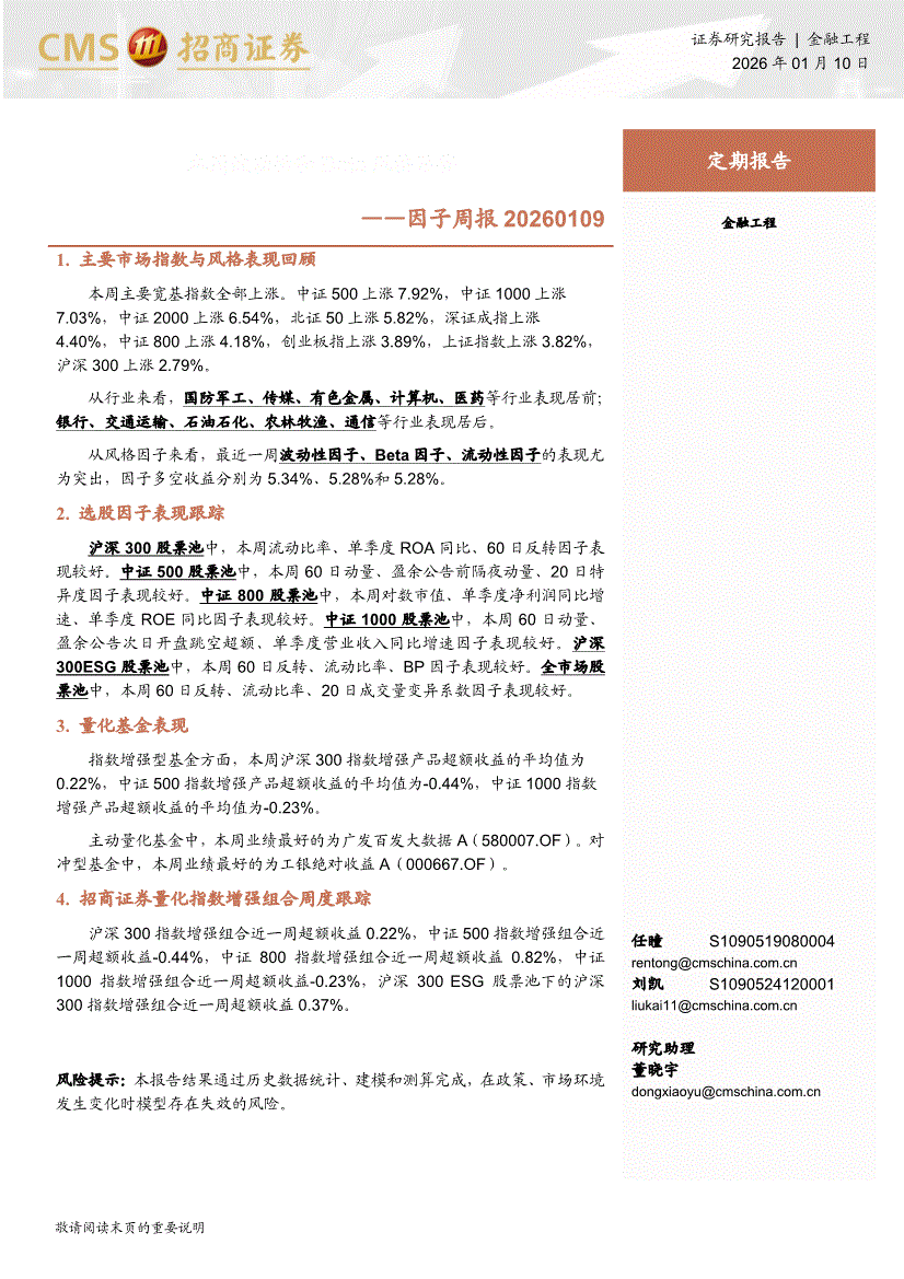 招商證券-因子周報(bào):本周波動(dòng)性和Beta風(fēng)格顯著-260110