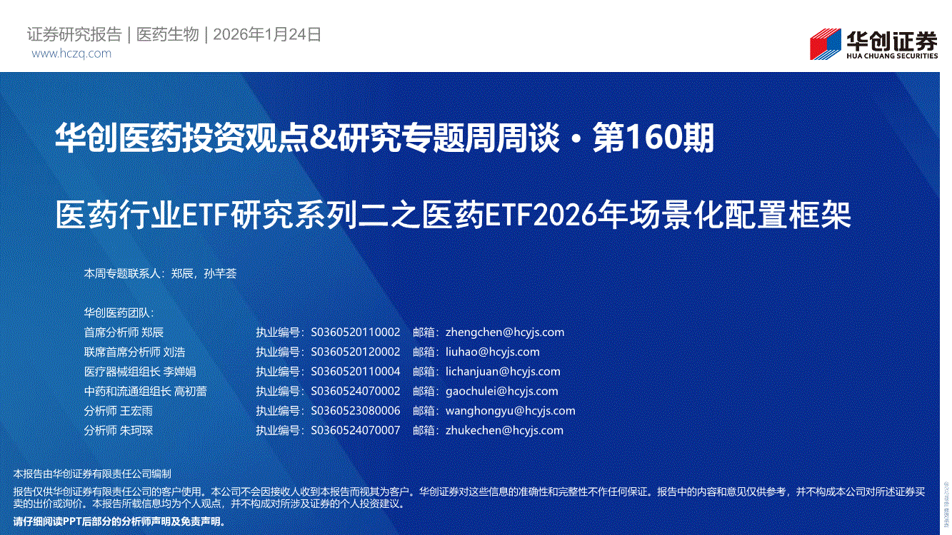 醫(yī)藥行業(yè):華創(chuàng)證券-醫(yī)藥行業(yè)投資觀點(diǎn)&研究專題周周談·第160期:醫(yī)藥行業(yè)ETF研究系列二之醫(yī)藥ETF2026年場(chǎng)景化配置框架-260124