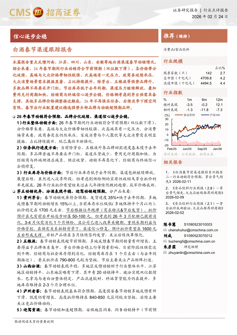 食品飲料行業(yè):招商證券-食品飲料行業(yè)白酒春節(jié)渠道跟蹤報(bào)告:信心逐步企穩(wěn)-260224