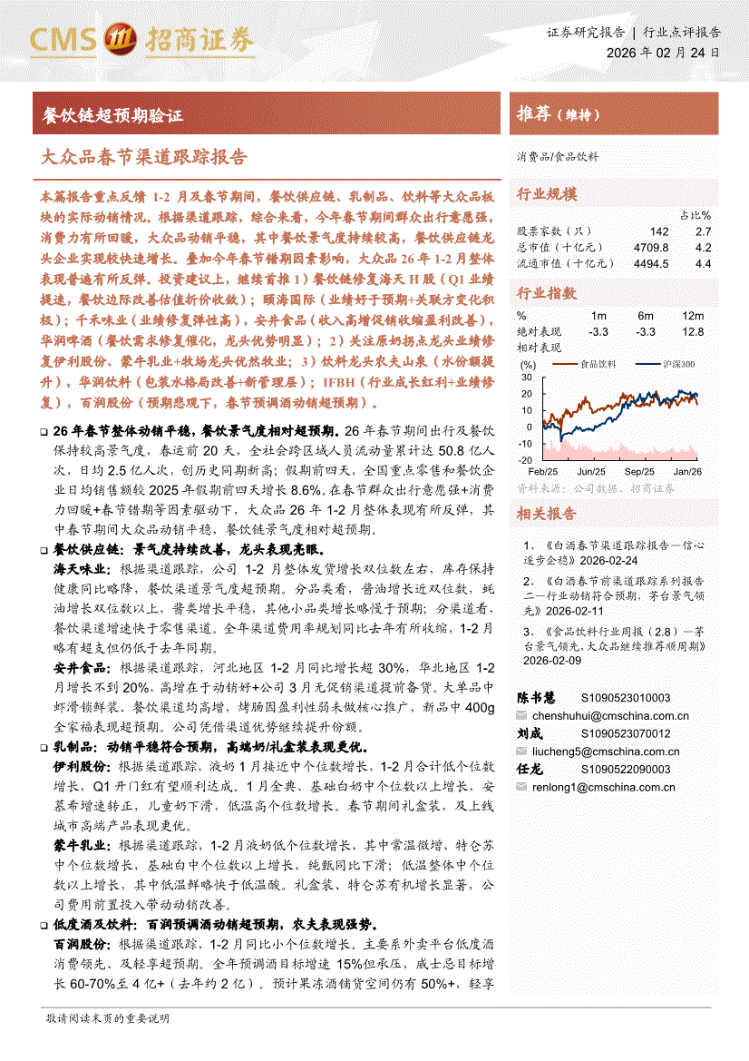 食品飲料行業(yè):招商證券-食品飲料行業(yè):大眾品春節(jié)渠道跟蹤報告,餐飲鏈超預(yù)期驗證-260224