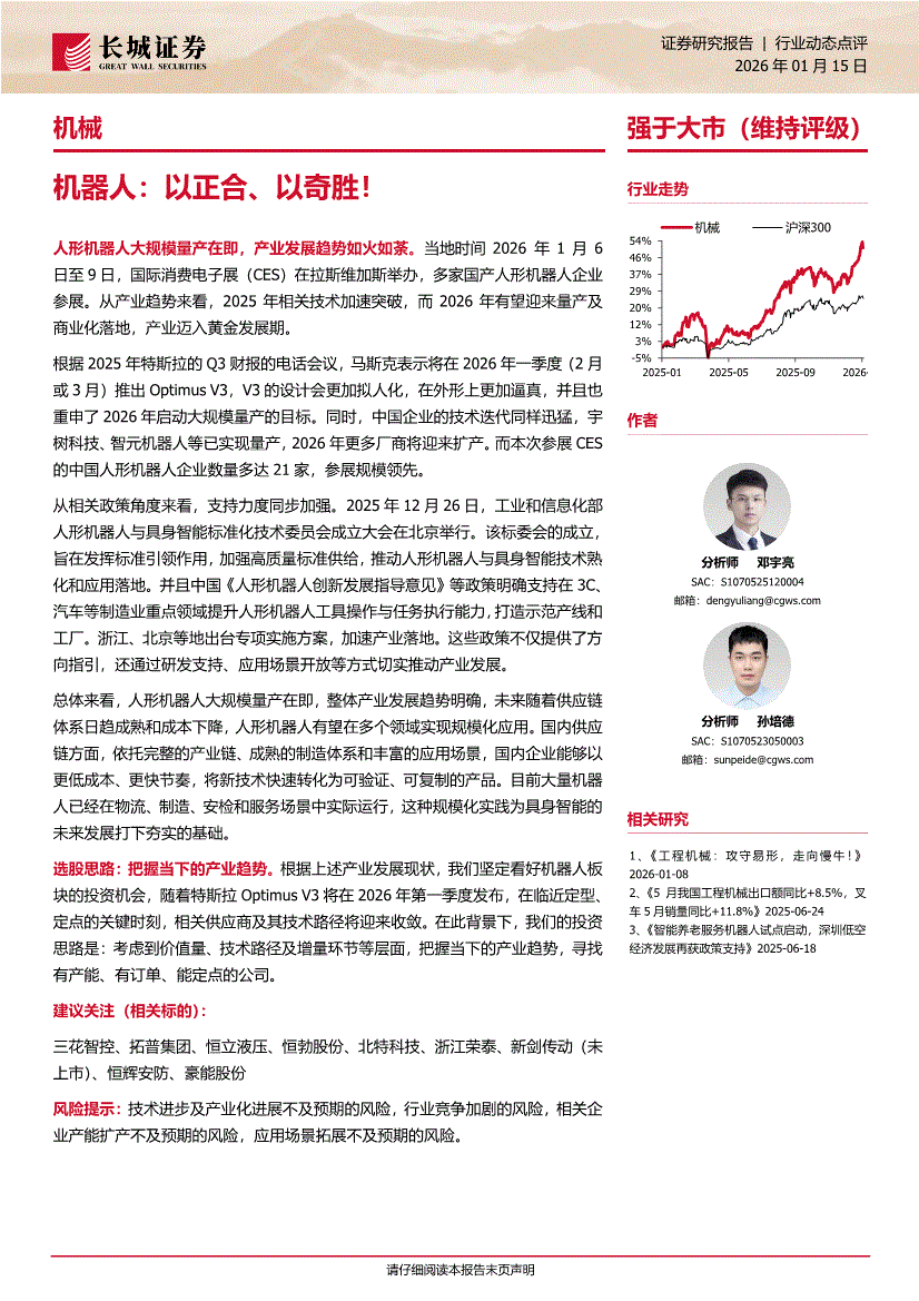機(jī)械行業(yè):長城證券-機(jī)械行業(yè):機(jī)器人,以正合、以奇勝!-260115