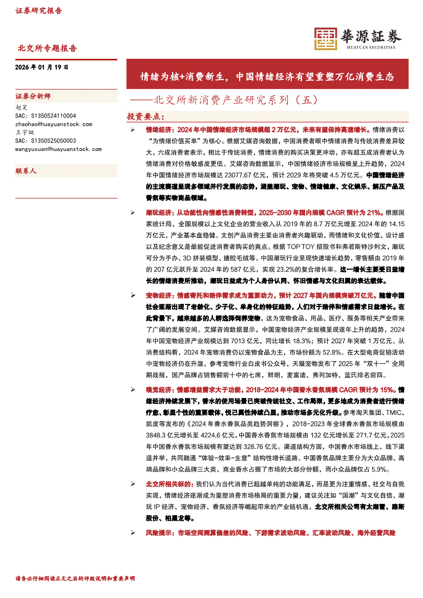 華源證券-北交所新消費產(chǎn)業(yè)研究系列(五):情緒為核+消費新生,中國情緒經(jīng)濟有望重塑萬億消費生態(tài)-260119