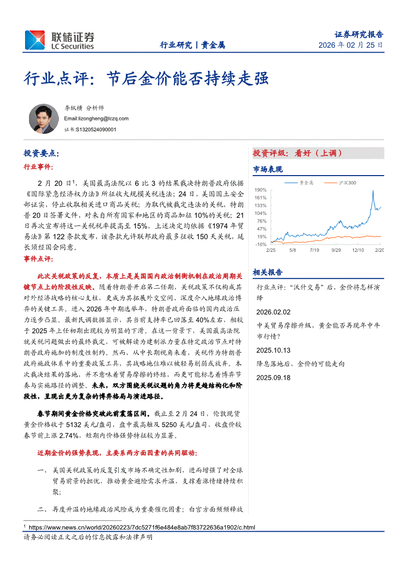 貴金屬行業(yè):聯(lián)儲證券-貴金屬行業(yè)點評:節(jié)后金價能否持續(xù)走強-260225